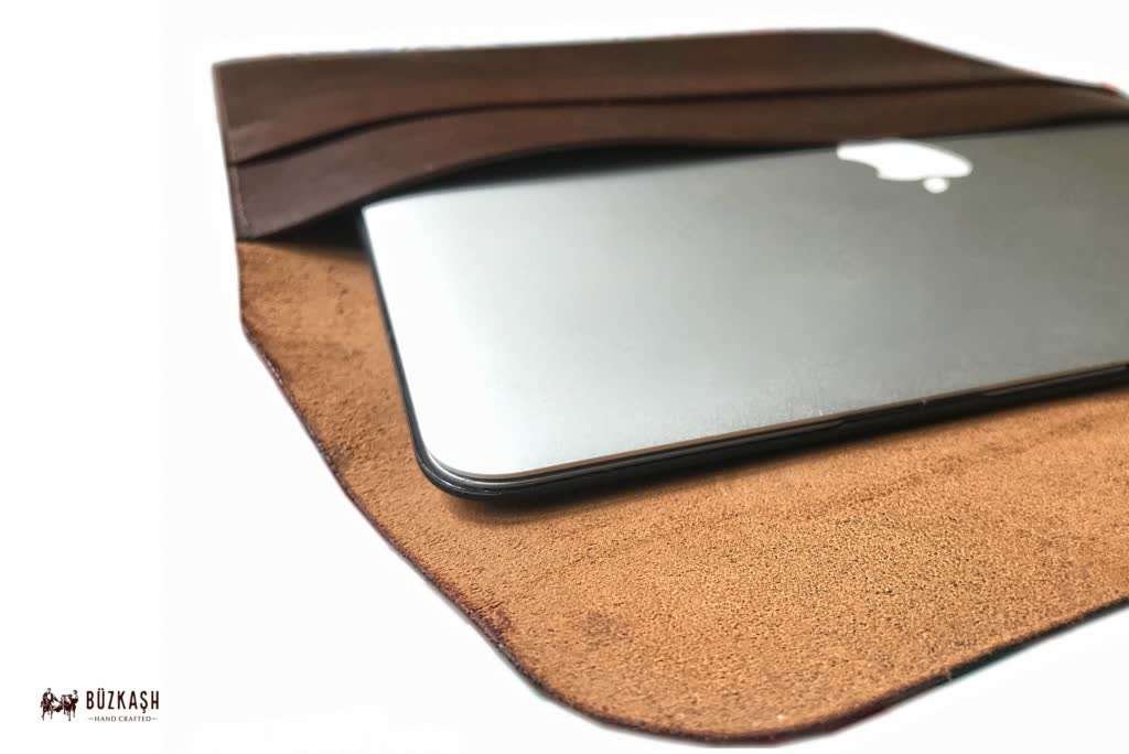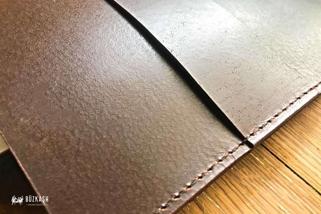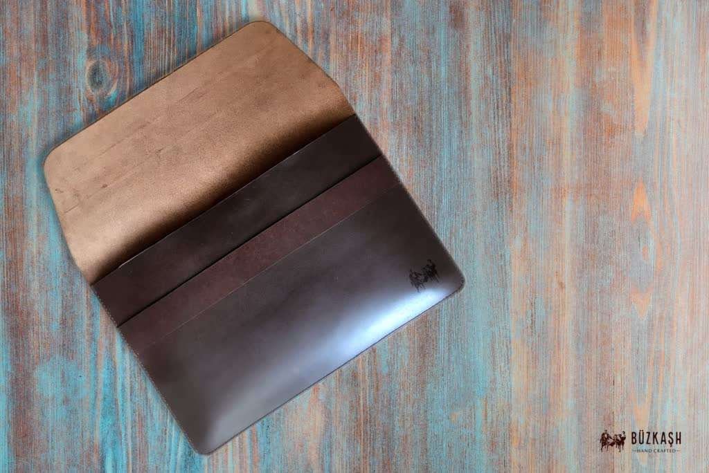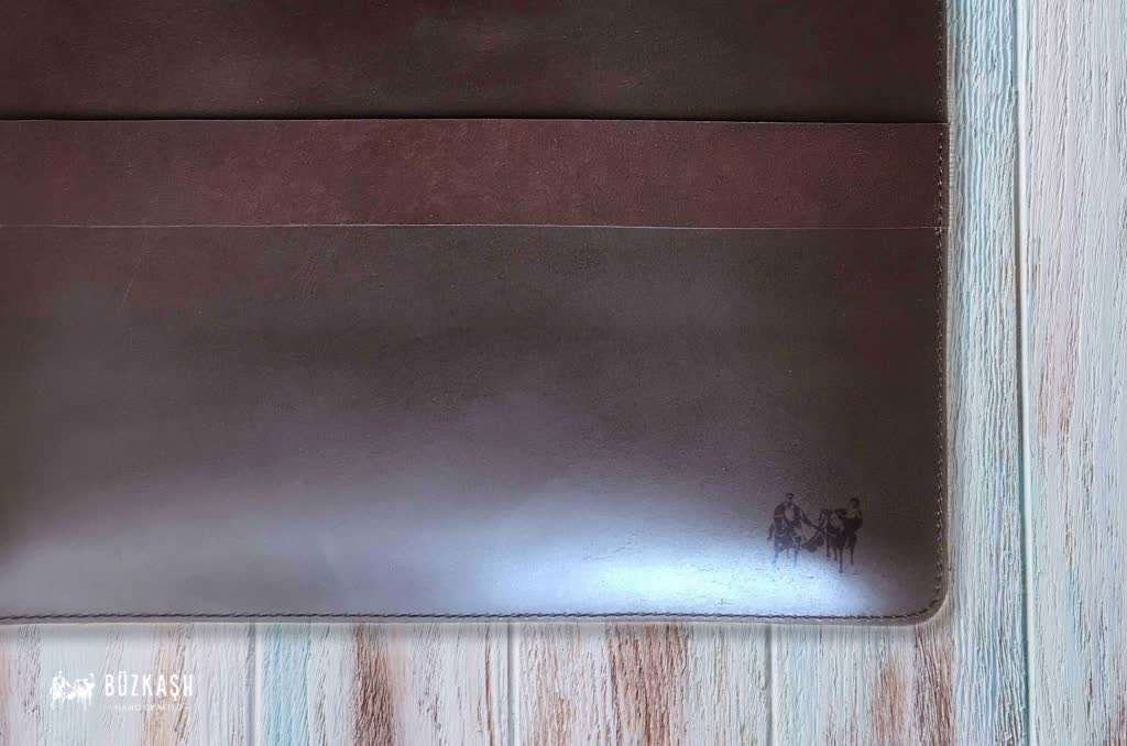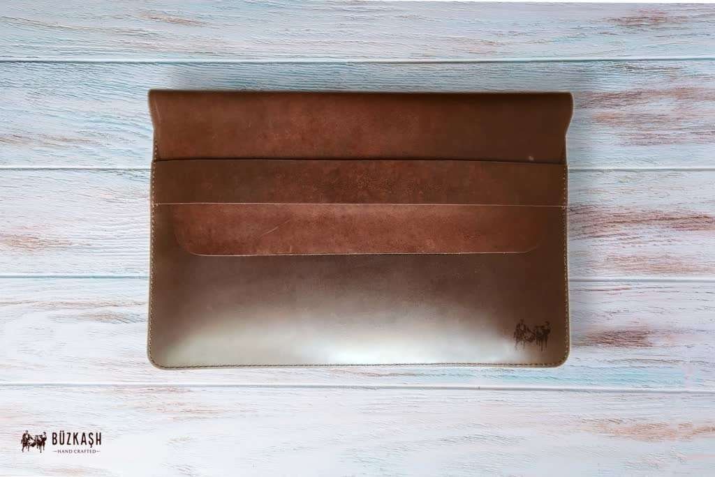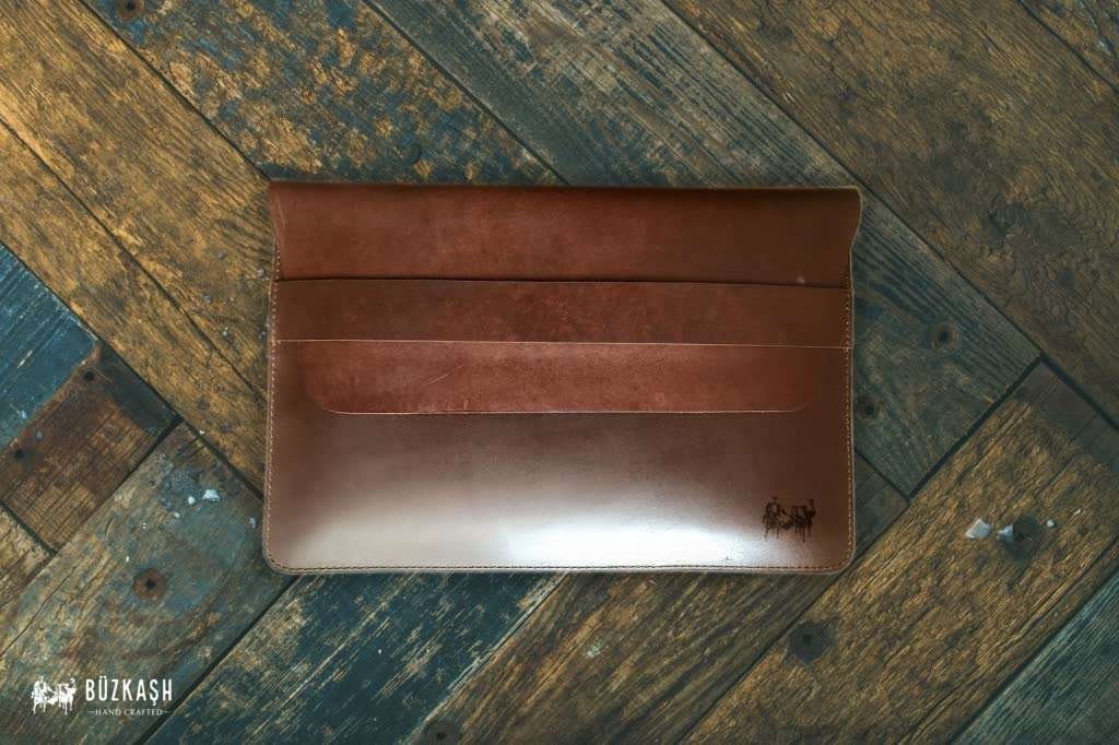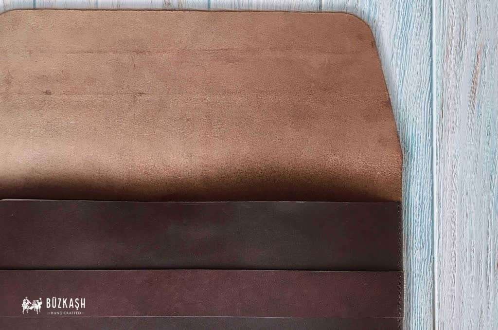 The Sleeve has zero metallic parts but comes with a fitted leather strip that holds the top flap for the safety of the contents. This compact yet simple sleeve can easily fit in any of the Buzkash – Handcrafted leather bags, making it an essential travel companion.
