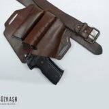 HaflingerΒ is one of our bestsellers. Designed to have an open-top and open-muzzle, the Haflinger makes it super easy to draw your firm arm. Keeping in mind that in most cases an extra mag is required, the Haflinger has two magazine compartments. Made from cow/buffalo hide,Β handstitched and molded around a model of actual pistol, the haflinger is a great fit for a wide range of pistol frames.