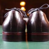 - Shoe Upper Dye: Hand-stained with liquid dye giving it an aniline look while retaining the hide’s natural surface