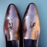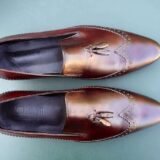 - Shoe Upper Dye: Hand-stained with liquid dye giving it an aniline look while retaining the hide’s natural surface