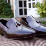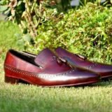 ĹSalerno is a Tassel Loafer built on the Modern Last. Handstitched upper from the finest top-grain calf leather cemented onto a Bovine leather sole. The brogue pattern is etched by our artisans using the classical handheld brogue punch giving it a subtle appearance. The in-sole is injected with a PU layer for extra cushioning and comfort.
