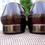 - Sole Finish: Hand-stained with liquid dye, treated with abrasive wax to fill the pores and give the sole a smoother look and finally treated with carnauba wax for final finish using 800 rpm horse-hair brush